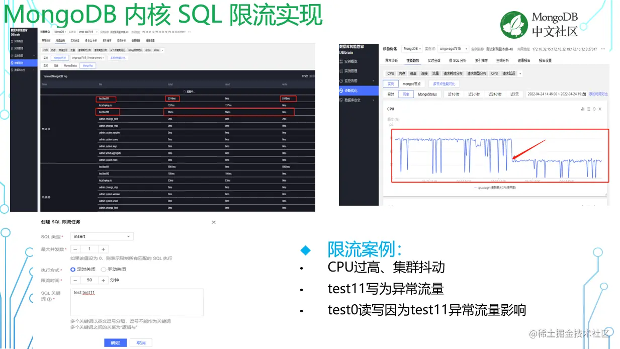 **第四部分:**介绍腾讯云 MongoDB 内核 SQL 限流功能及其实现;