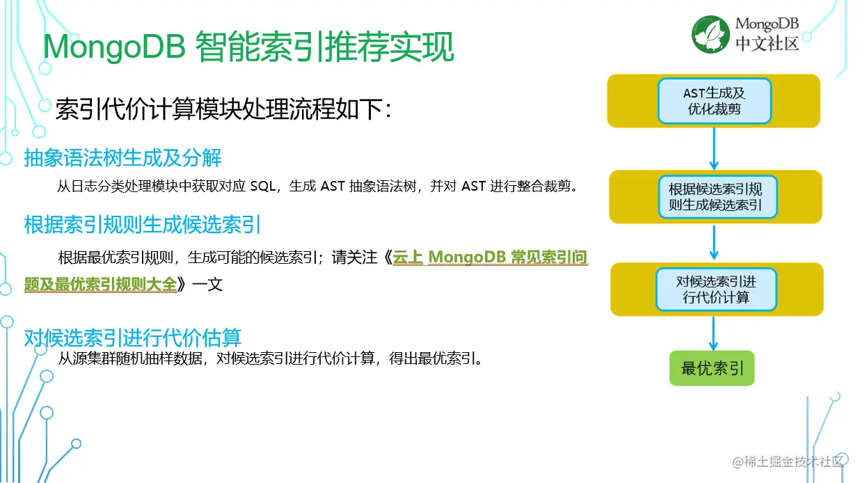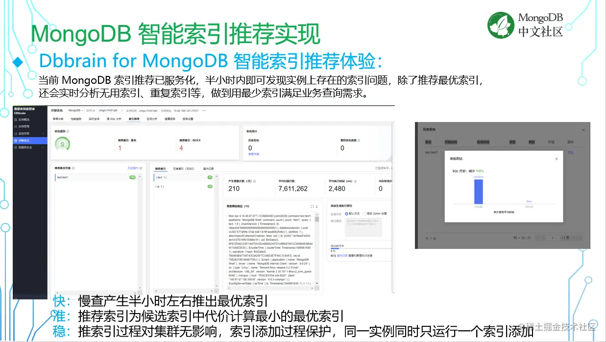 **第三部分:**介绍腾讯云 MongoDB 智能索引推荐实现流程及其实现原理;