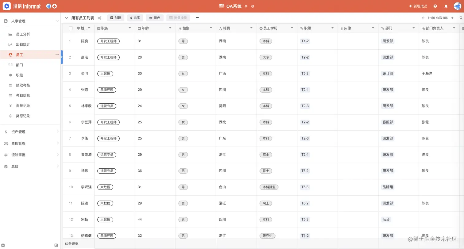 并且织信Informat还提供了“人事管理系统”模板供用户免费体验,具体功能下面给大家做详细介绍!