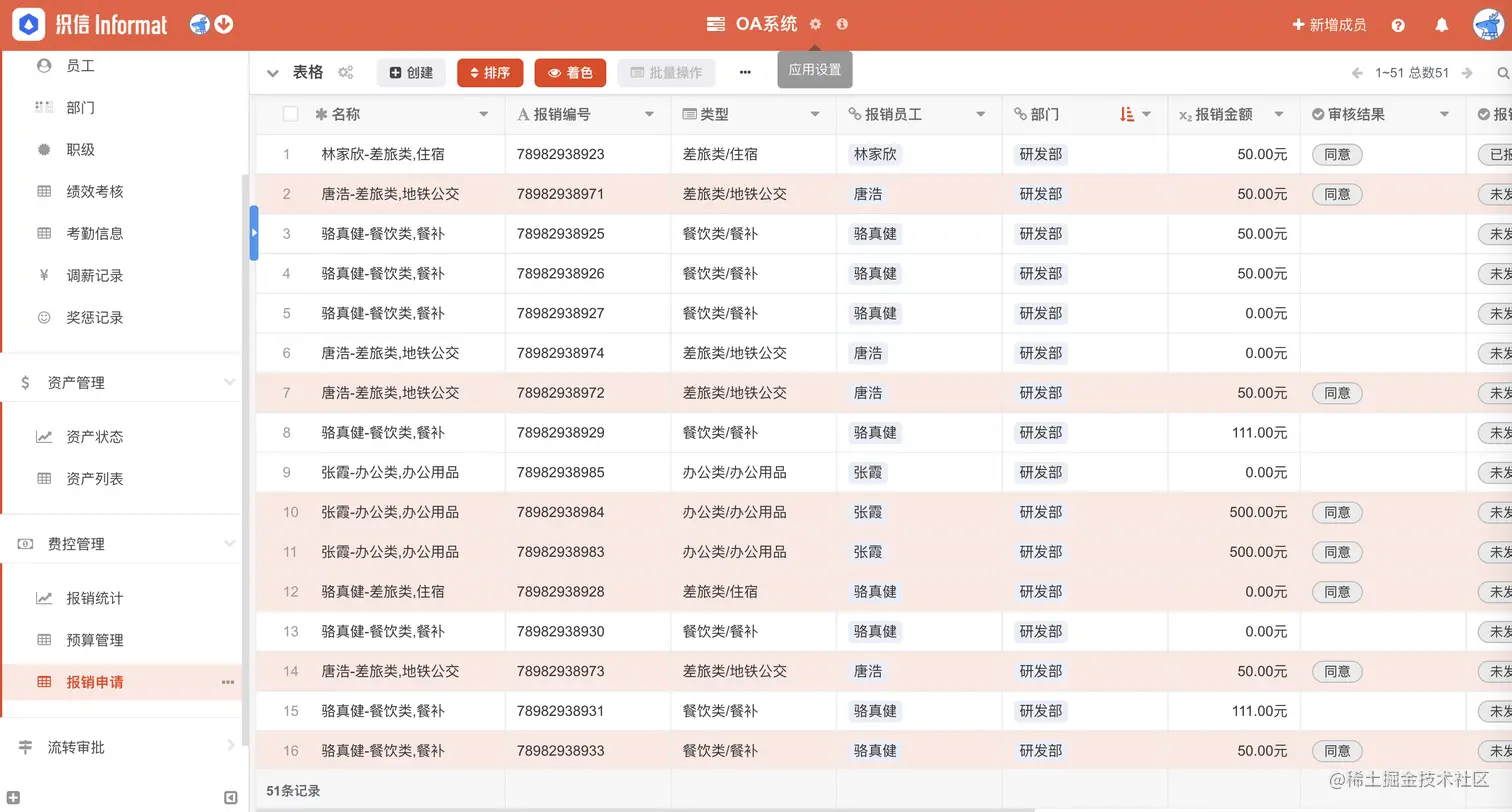 更多:系统同时支持企业自定义添加各类数据表,并针对不同的表进行汇总统计,生成企业的个性化报表,搭配自定义审批流程与自动化可以满足您各类不同的需求。