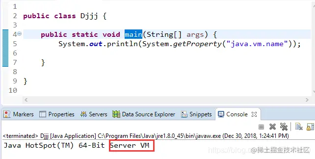 我们使用的JVM(HotSpot)如果不显式指定是-Server模式还是-client模式,JVM能够根据一个原则去判断:J2SE5.0检测的根据是至少2个CPU和最低2GB内存。如果是,则虚拟机以Server模式运行,该模式更注重编译的质量,启动速度慢,适合在服务器环境下使用。如果不是,则虚拟机会以client模式运行,该模式更注重编译的速度,启动速度快,更适合在客户端的版本下使用。从上述的参考链接中截出的图: