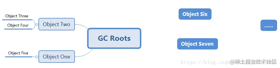 图中右侧的两个对象没有引用链,被当做是可回收对象。