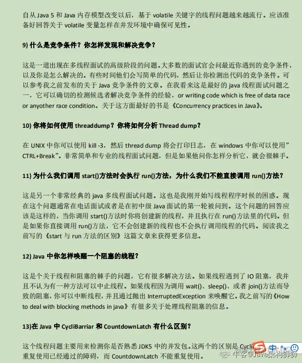 多线程面试专题答案解析文档截图