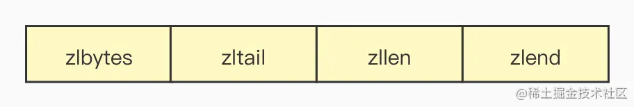 压缩列表头大小,包括zlbytes、zltail和zllen所占用的大小:32 bits * 2 + 16 bits