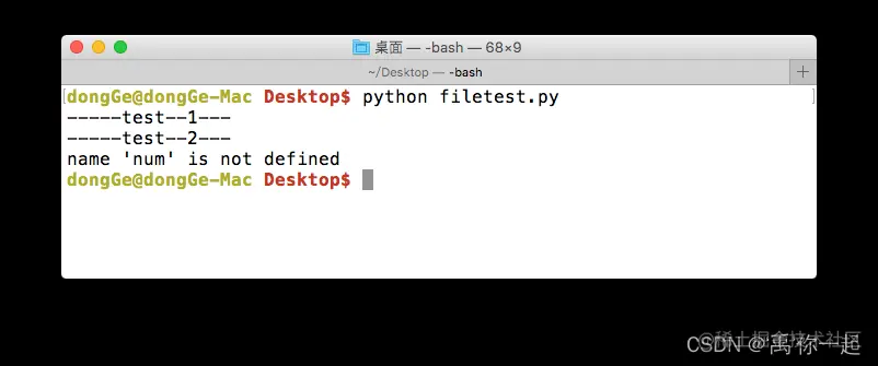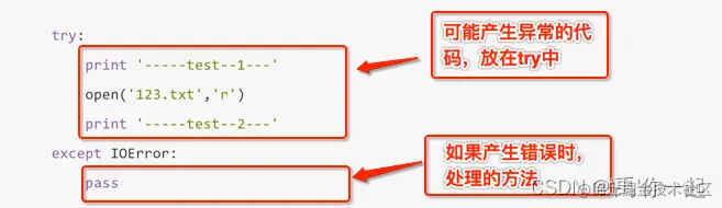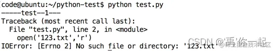 open('123.txt','r') # 如果123.txt文件不存在,那么会产生 IOError 异常 print('-----test--2---')