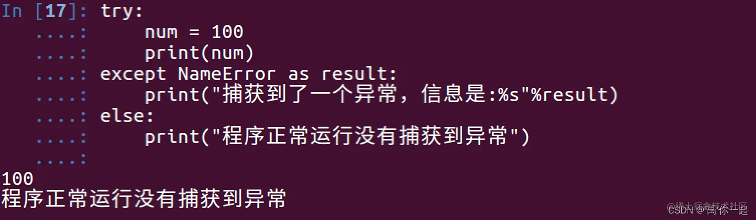 咱们应该对else并不陌生,在if中,它的作用是当条件不满足时执行的实行;同样在try...except...中也是如此,即如果没有捕获到异常,那么就执行else中的事情