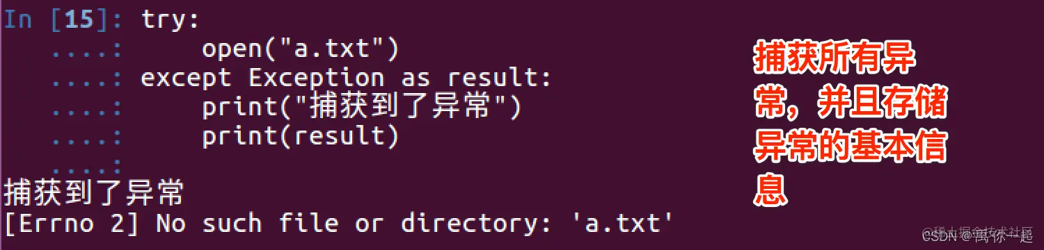 上例程序,已经使用except来捕获异常了,为什么还会看到错误的信息提示?