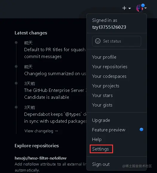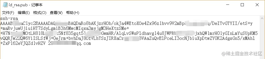 用记事本打开上述图片中的公钥(id_rsa.pub),复制里面的内容,然后开始在github中配置ssh密钥。