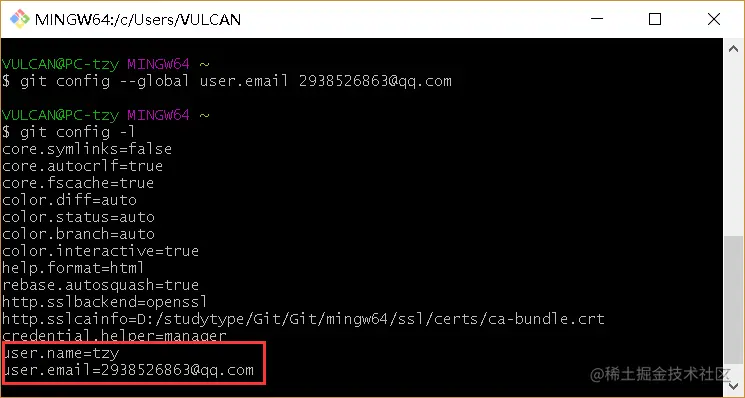 config -l 检查是否配置成功,至此git安装及配置全部完成。