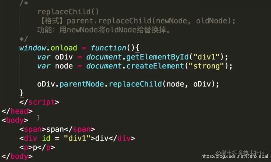 【格式】document.createElement(标签名);【功能】创建一个新节点