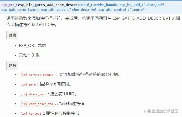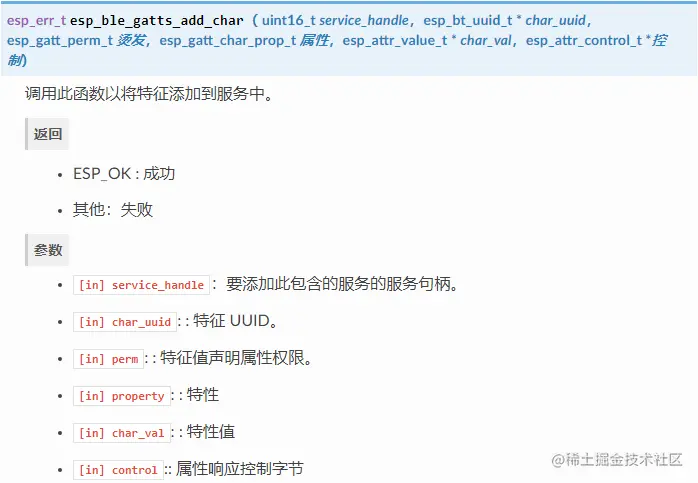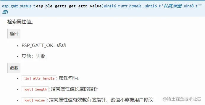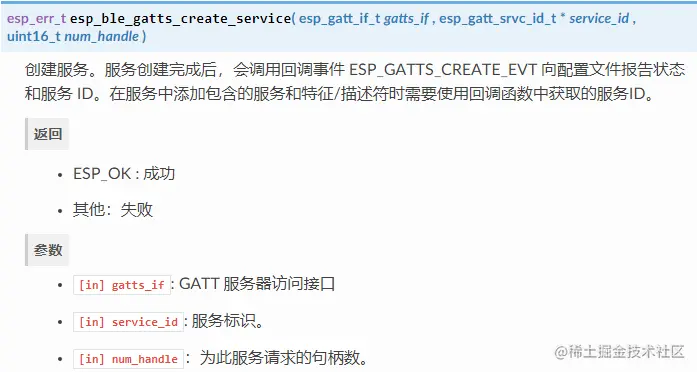 以下 GATT 接口位于 bt/host/bluedroid/api/include/api/esp_bt_main.h 和 bt/host/bluedroid/api/include/api/esp_gatts_api.h。
