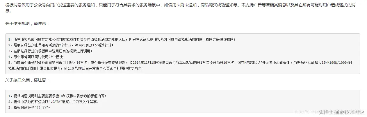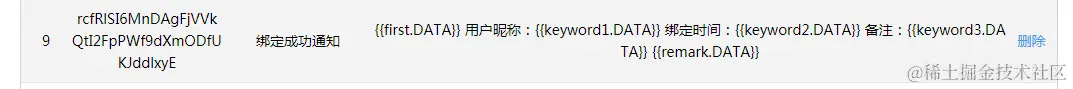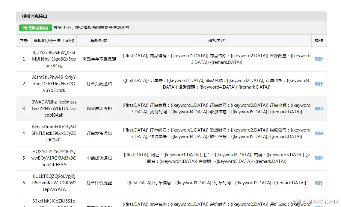 模板id就是我们开发者要使用的了,后面的就是展示给客户的内容了,然后还会有一个链接,就是点击这个消息会跳转到哪里