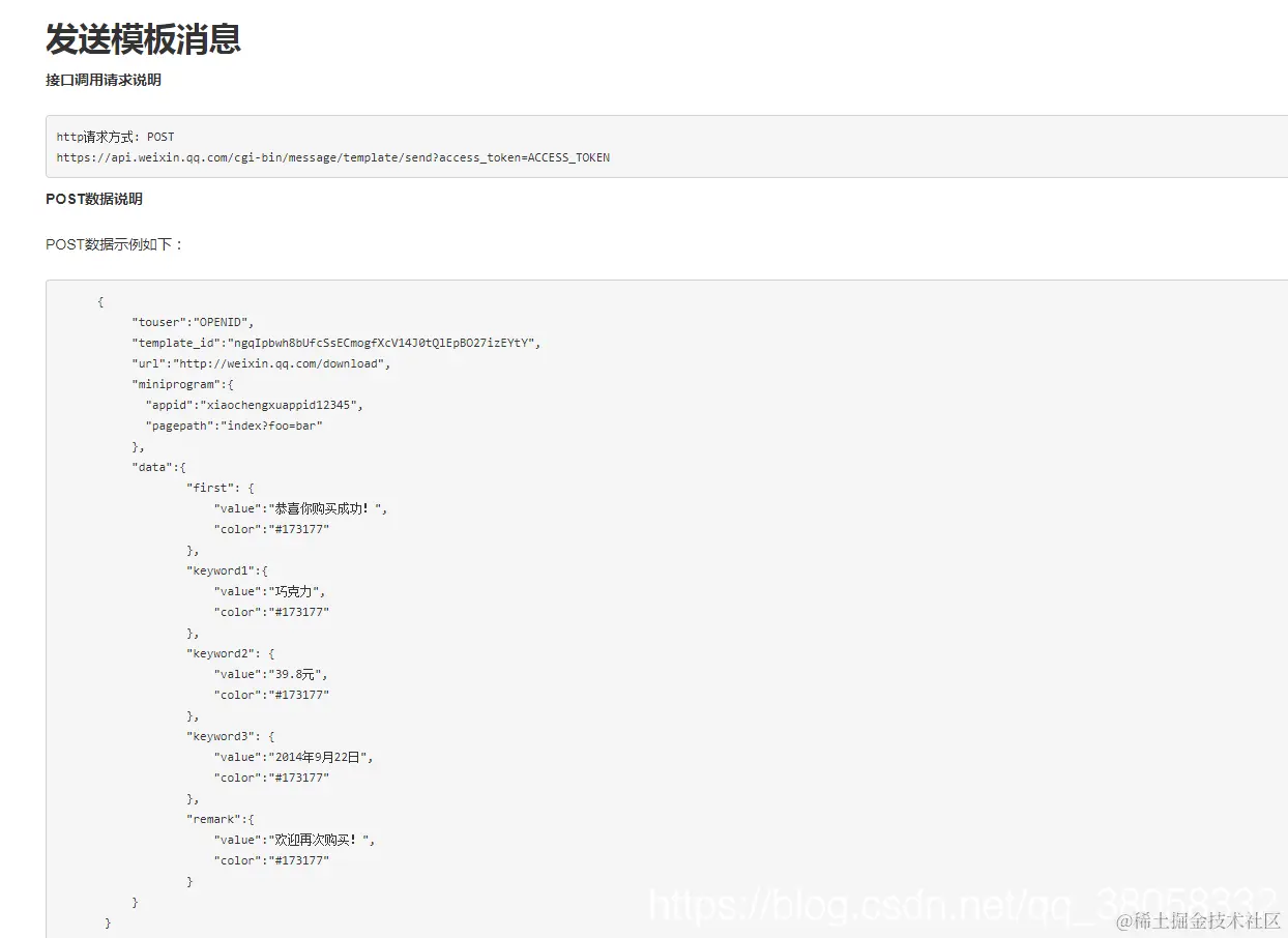 发送模板消息,post请求,参数格式为json