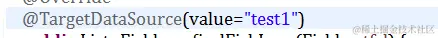 这里使用的时候把需要使用的表名注入,如果是默认的数据源,则不需要加这个注解,具体的springboot自定义注解的建立,可参考blog.csdn.net/qq_38058332…,这里的mapper文件和实体扫描可以跟默认的数据源配置相同即可