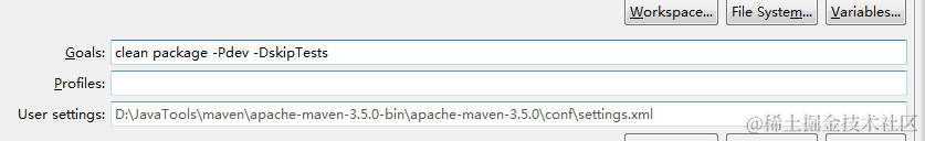package -Pdev 使用开发环境打包