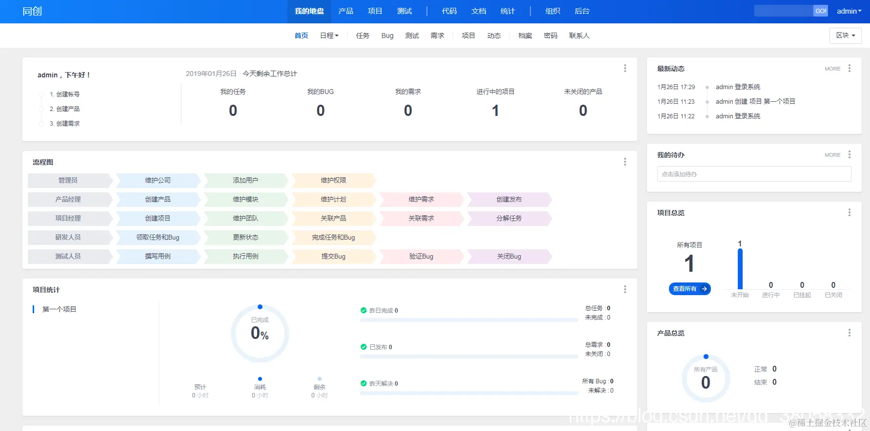 登录后,即可使用禅道项目管理功能。 具体的使用,请直接参考我们的使用手册文档。