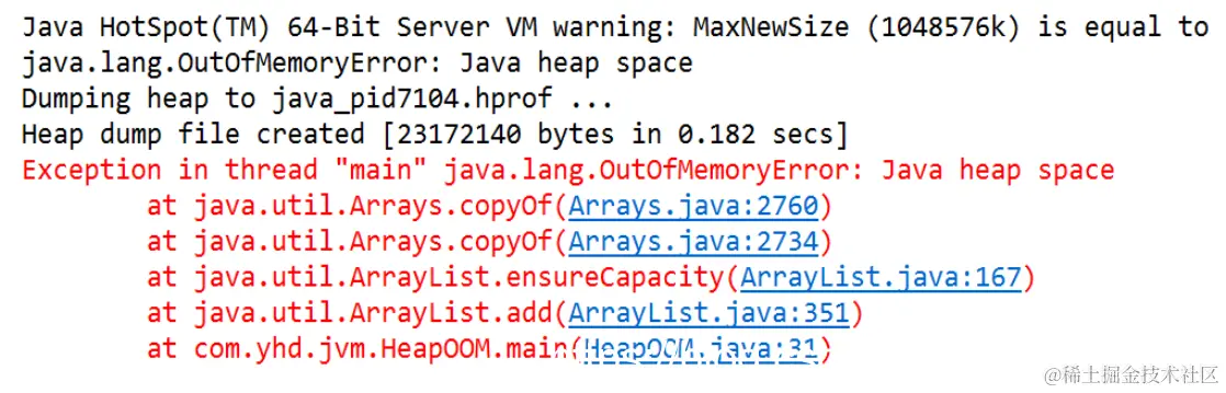 java虚拟机创建的对象太多,在进行垃圾回收之间,虚拟机分配到堆的内存已经用满了,与heap space 有关
