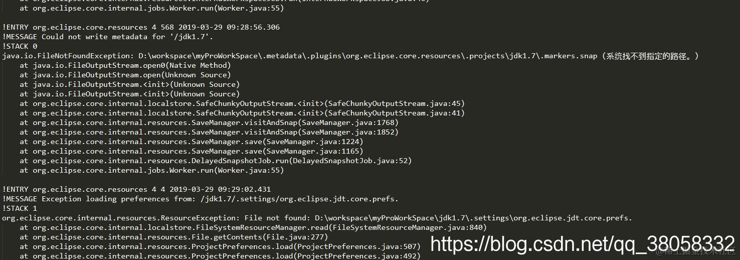 由于在eclipse关闭的时候卡掉,所以本人直接就把电脑关掉了,再次启动电脑后,启动该eclipse中的该工作区,但是无法启动,报错信息为:在启动的时候遇到一个错误,请查看启动日志。