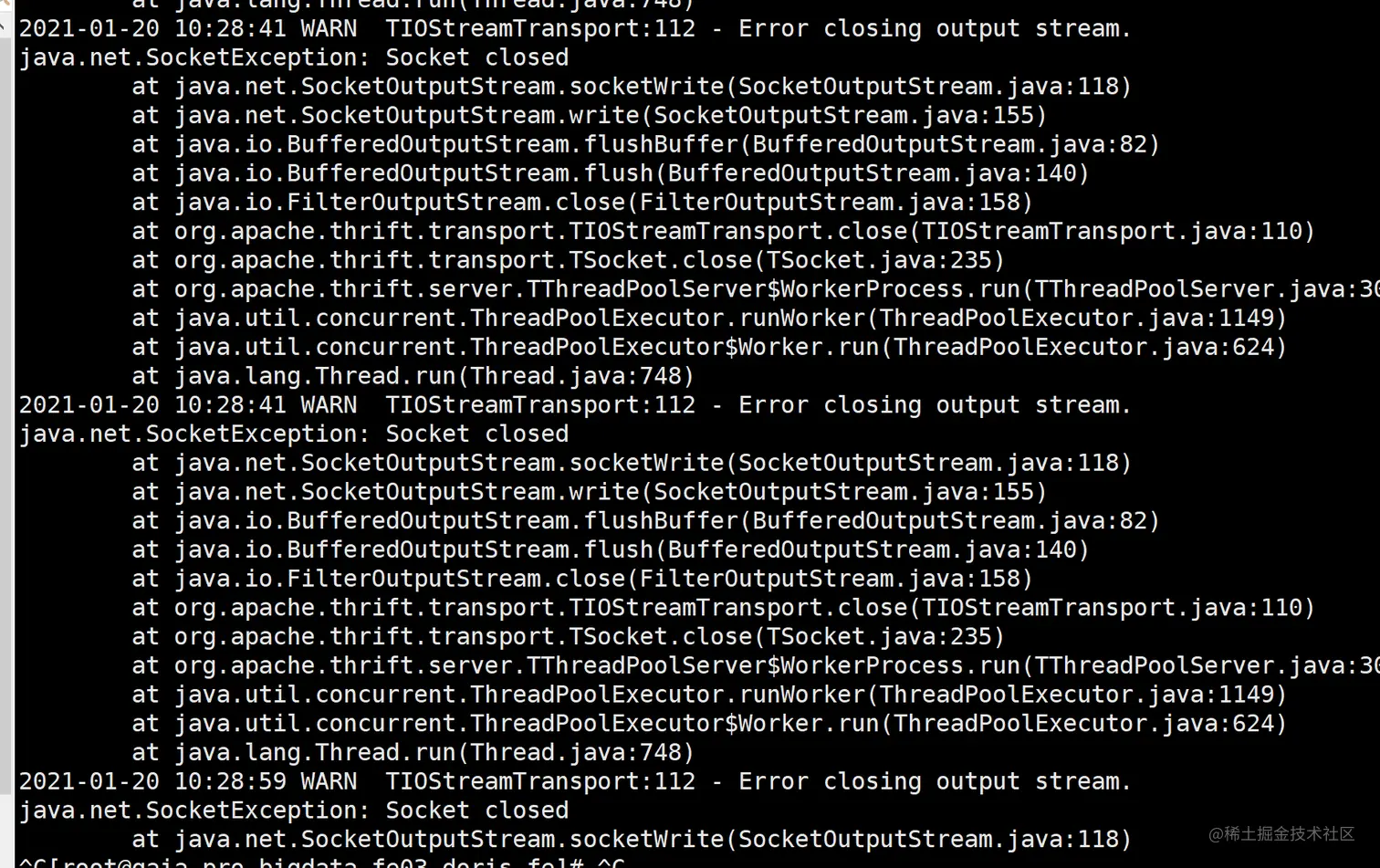 后来在社区,缪小姐姐及陈明雨大神的协助下,进行了各种尝试定位,认为是在启动的时候元数据同步异常,这个异常可能是因为我当时的load数据任务在同步修改元数据,造成的,后来在凌晨,生产开货完成以后,停掉所有load任务,然后执行删除问题FE节点元数据,然后在重新使用--helper启动,依然报错,最后没办法,尝试将master节点的fe元数据拷贝到问题节点FE,将问题节点FE的元数据目录删除,然后重建,将赋值过来的元数据,拷贝到元数据目录