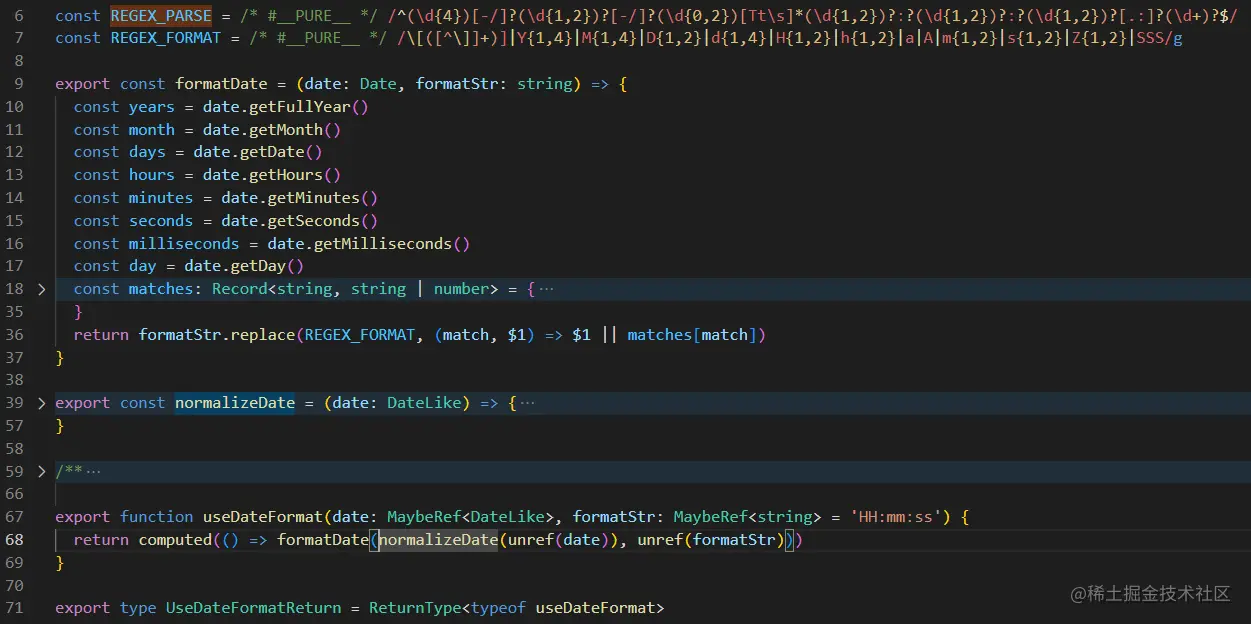但如果您的项目中使用了vueuse,那么请注意它提供了格式化日期和时间的方法了,那就是useDateFormat,我们不用自己再写了,我们今天就一起了解一下其源码实现。一张图预览今日学习内容: