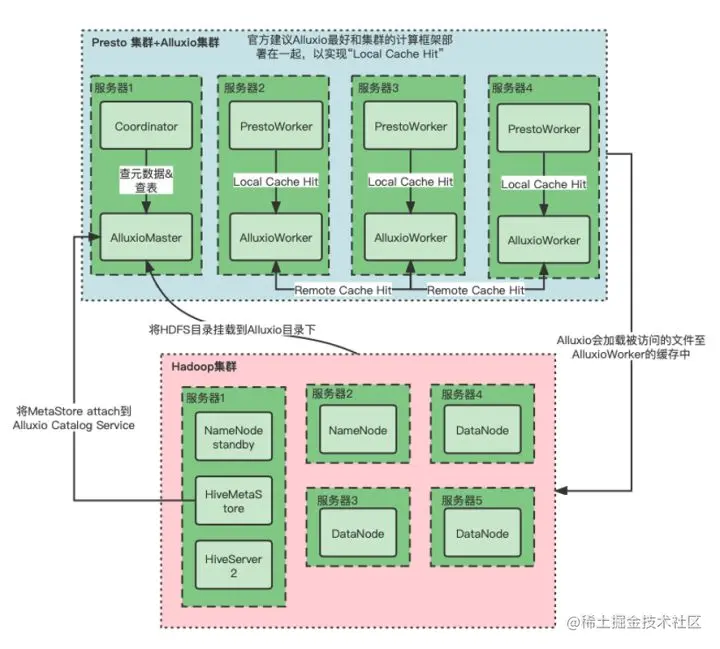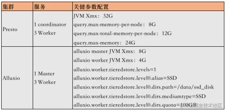 - 共搭建2个集群:Presto+Alluxio集群,Hadoop集群。