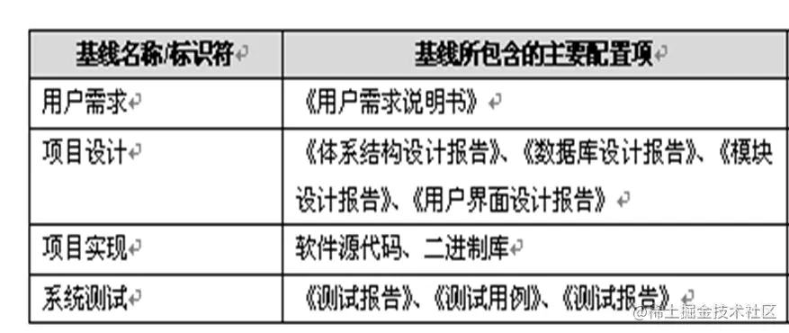 - 基线提供了软件生存期中各个开发阶段的一个特定点, 标志开发过程一个阶段的结束,或者里程碑,是一个静态点。例如:需求点,设计点等等…需求阶段可以产生很多文件,既有很多配置项。