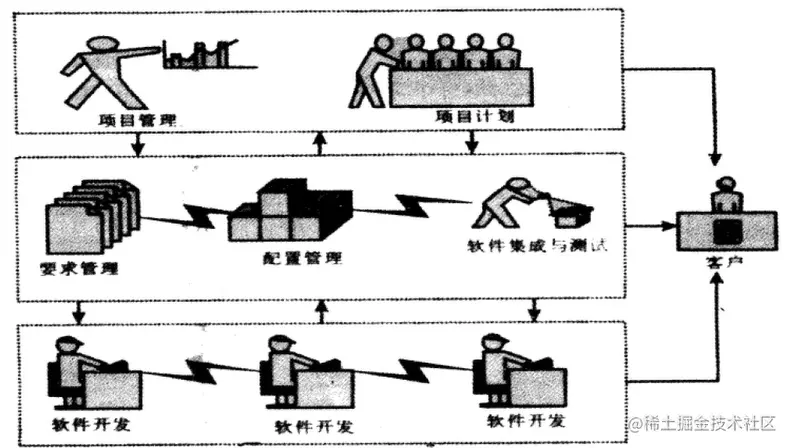 开发过程中有很多中间产品,以及不同版本,他们都需要配置管理监管,配置管理相当于大的仓库,起到一个较比的作用。