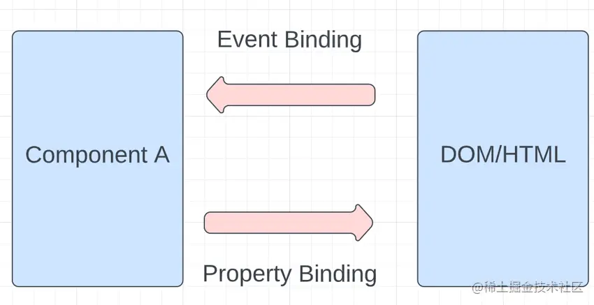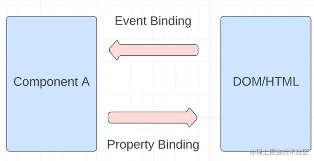 根据定义,数据绑定是一种协调模板和组件的机制。DOM和组件之间的整体控制流如下。