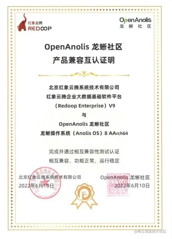 红象云腾秉承“从开源中来,到开源中去”的思想,于 2021 年加入到龙蜥社区。近日,红象云腾(Redoop Enterprise)V9 完成与龙蜥操作系统(Anolis OS)8 AArch64 的兼容适配,双方进行严格测试,测试结果显示,相互兼容,功能正常稳定。