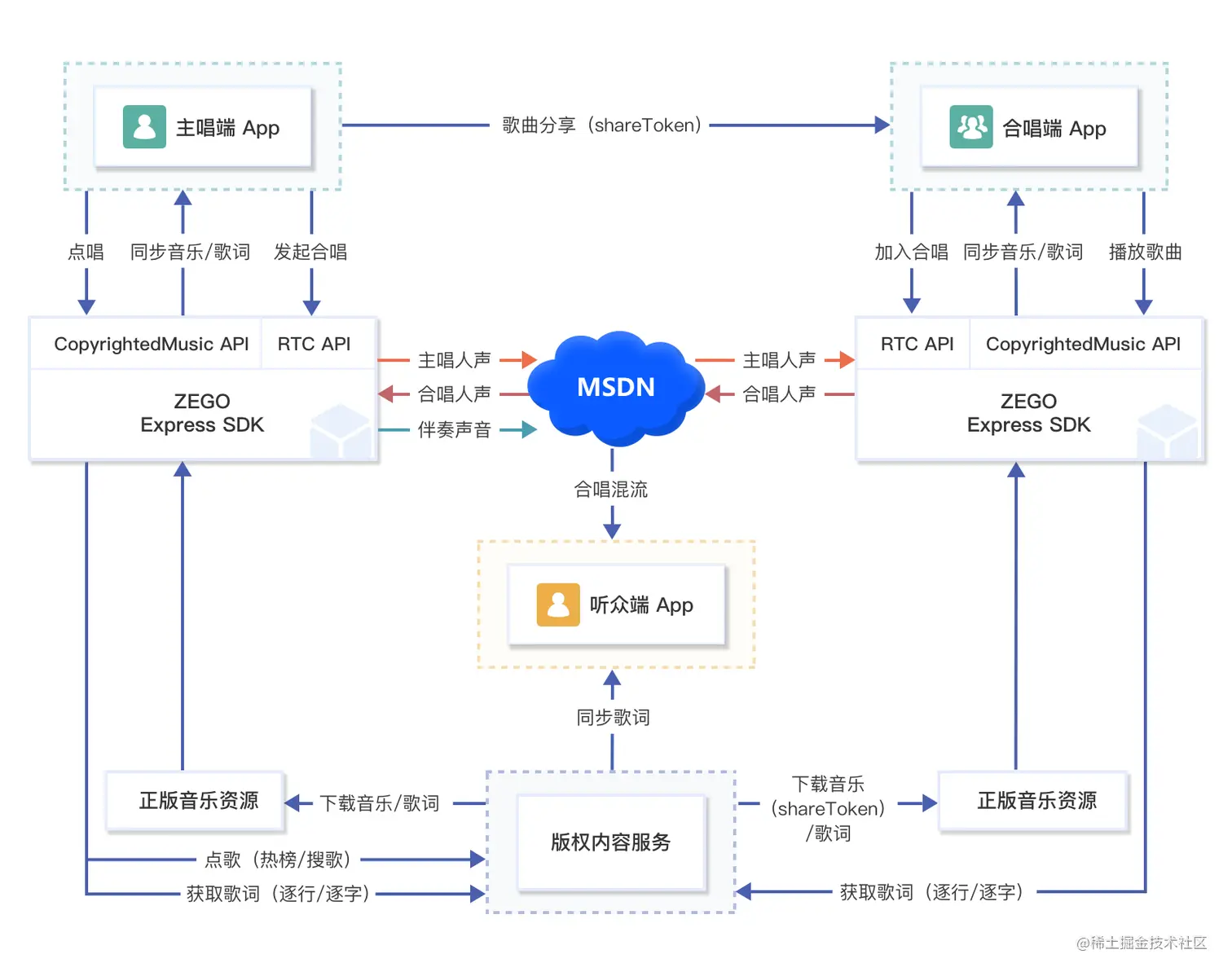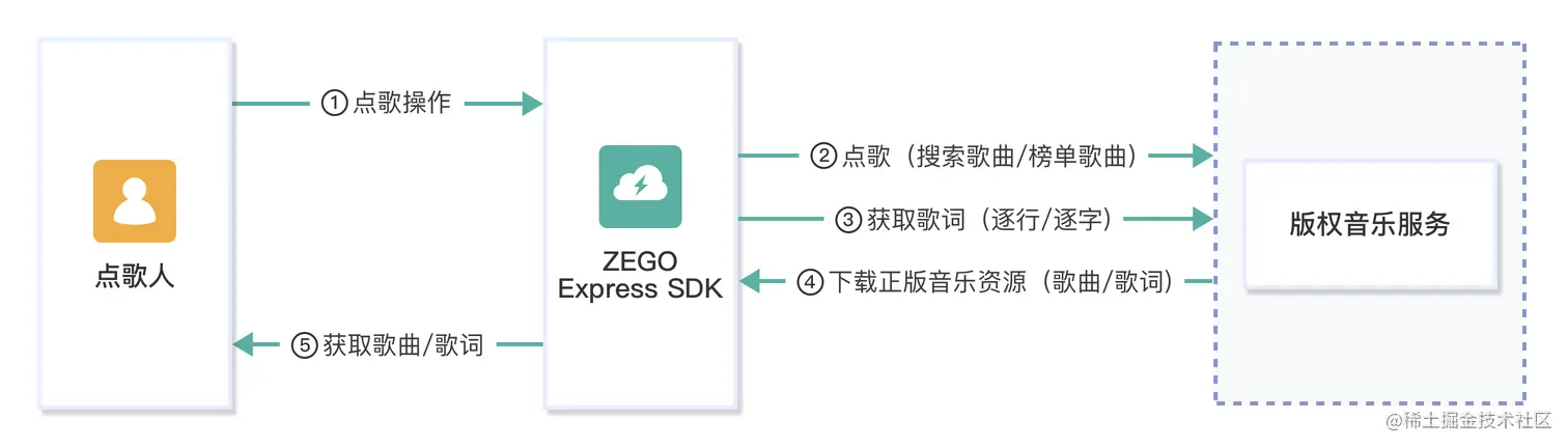通过 ZEGO Express SDK,可极速搭建含 正版曲库 的在线 KTV 场景:
