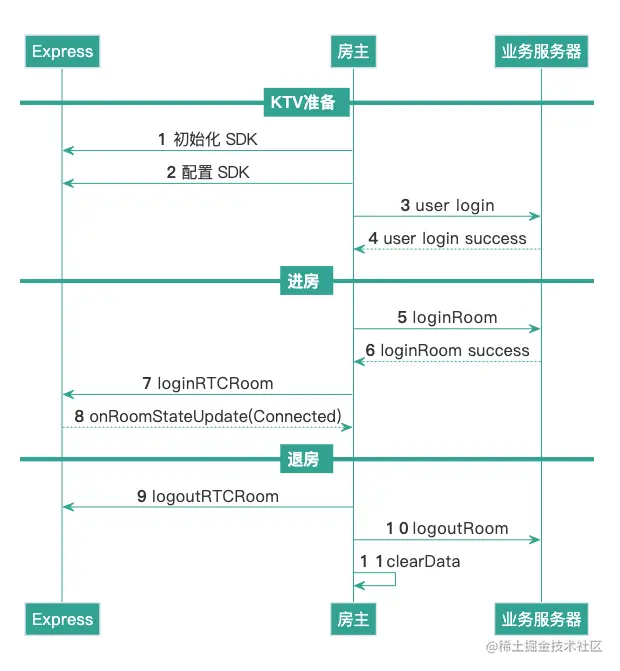 以下介绍实现一个完整在线 KTV 的基本流程,可帮助您从整体上理解在线 KTV 的核心业务。