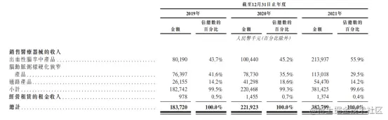 于业务纪录期,大部分收入来自销售出血性脑卒中产品。销售出血性脑卒中产品的 收入于 2019 年至2021年的复合年增长率为63.3%,为整体收入增长的主要驱动力之一。 出血性脑卒中产品的销售量占总收入的百分比由2019年的43.7%上升至2020年的45.2%, 并进一步上升至2021年的55.9%,主要是由于业务纪录期血流导向密网支架及弹簧圈栓塞系统的商业化。