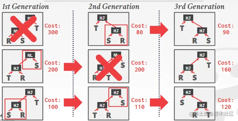 对于OLTP型数据库,用户操作往往不会涉及到太多表,因此可变性最高的就是不同access method的选取,比如sequential scan、binary search(B+树)、index scan(如果有的话)。变化并不多,因此这部分可以只用简单的启发式规则去定义如何选择即可,这也正是OLTP所需的简单高效。