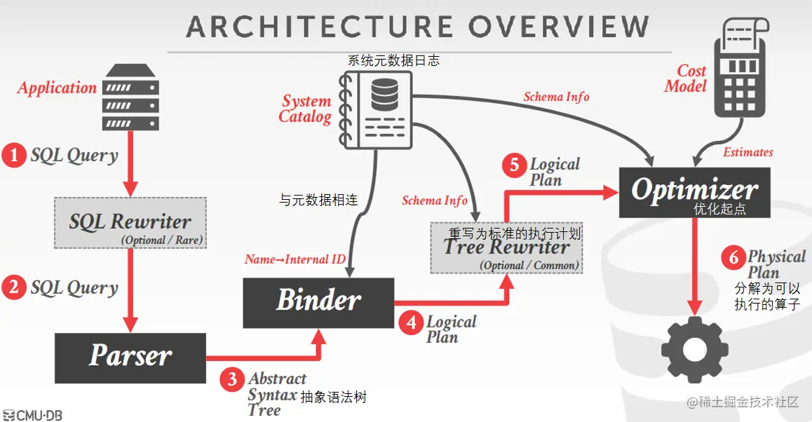 因为SQL是声明性的,所以查询只告诉DBMS要计算什么,而不告诉DBMS如何计算。在这个前提之下,各家数据库用起来的实际流程都差不多,区别在于DBMS怎样执行SQL更加高效,这就是查询优化。