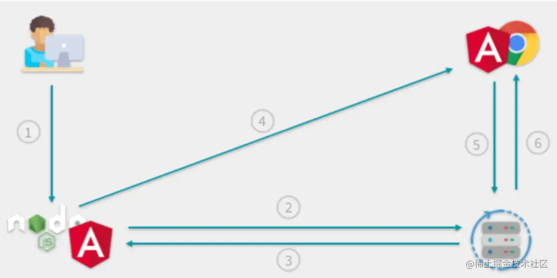用户向部署了 Angular 服务器端应用的 Node.js 服务器发起页面请求
