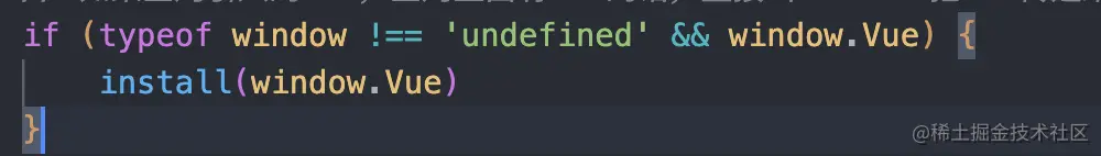 - 判断是否直接引入文件,如果是,就不用调用Vue.use()。如果全局引入的vue,全局里面有vue的话,直接叫install把vue传进来,直接全局注册好这些组件!