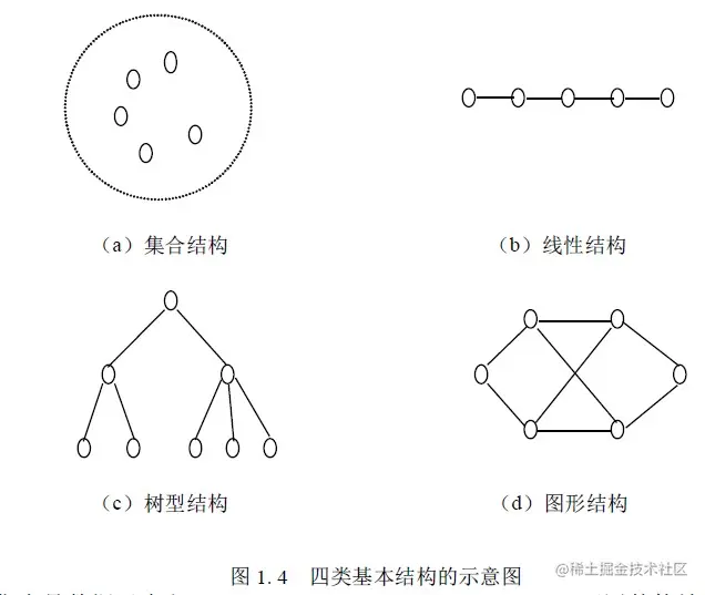 图状结构:图中数据元素之间的关系是多对多的。