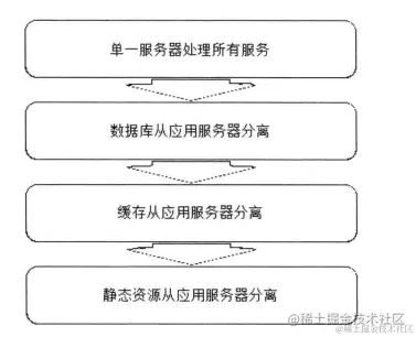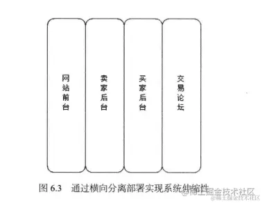 通过对业务处理流程上的不同部分分离部署,实现伸缩性