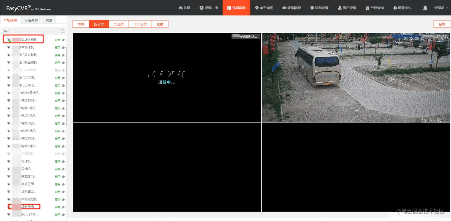 登录EasyCVR平台排查,发现有两个海康NVR设备的国标接入里,有两个通道重复,也是就是说,有一个摄像头同时接入了两个NVR。两个NVR均以国标GB28181协议接入到了EasyCVR平台。在另一个NVR通道中,点击重复的摄像头通道发现可以正常播放。