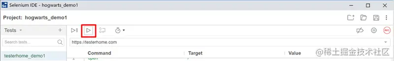 选择想要回放的测试用例,单击 play 按钮,在 IDE 中回放测试。