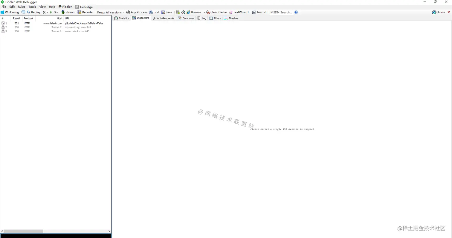 安装完成后,打开Fiddler就是这样: