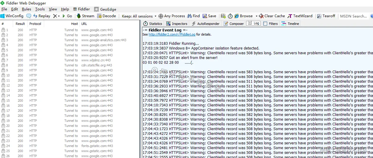 就会显示“您的连接不是私密连接”的提示,我们再看一下Fiddler: