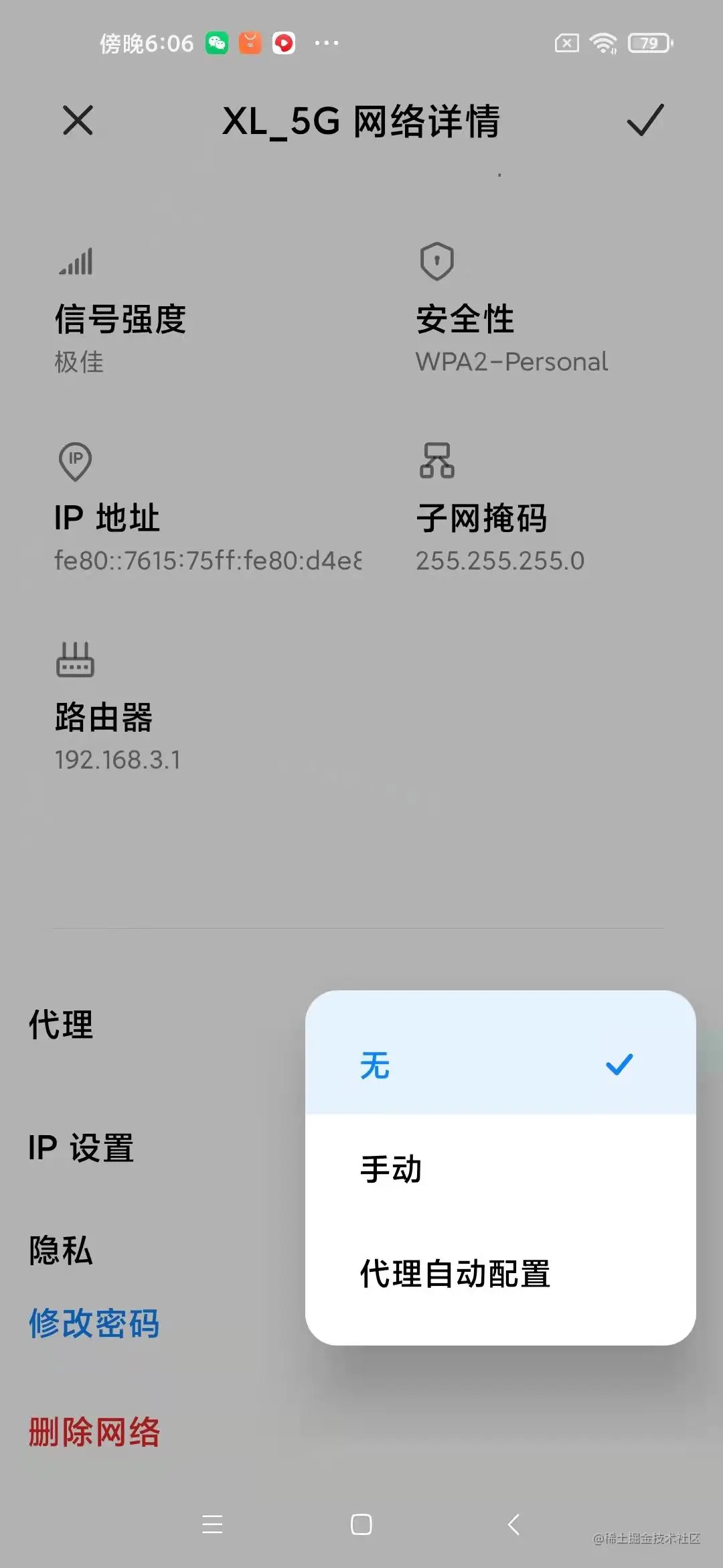 然后再设置手机的代理,以安卓手机为例,打开手机连接网络的网络详情,我这里是无线网:
