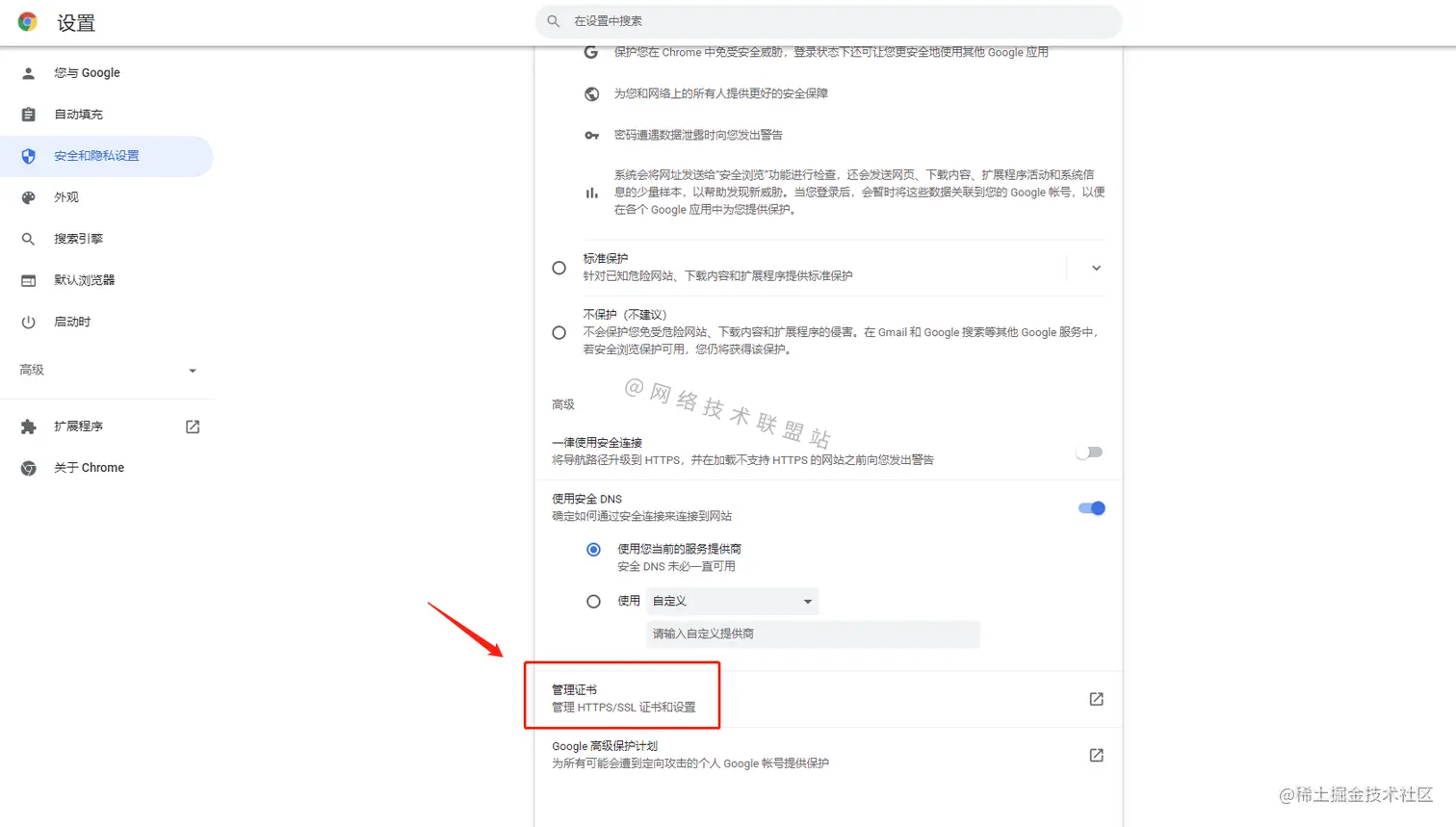 点击”管理证书”