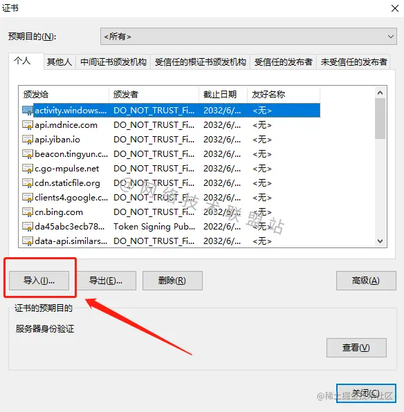 接下来,我们将证书导入到浏览器中: