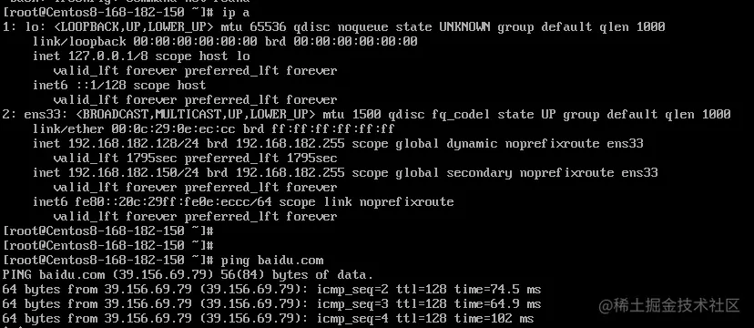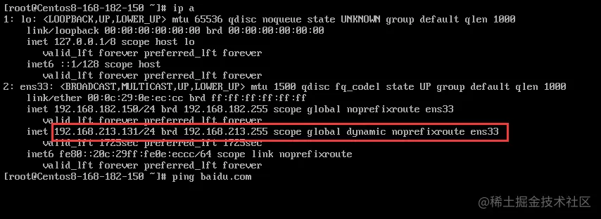 6)最后在虚拟机中配置好ip和dns,ping验证是否能联网