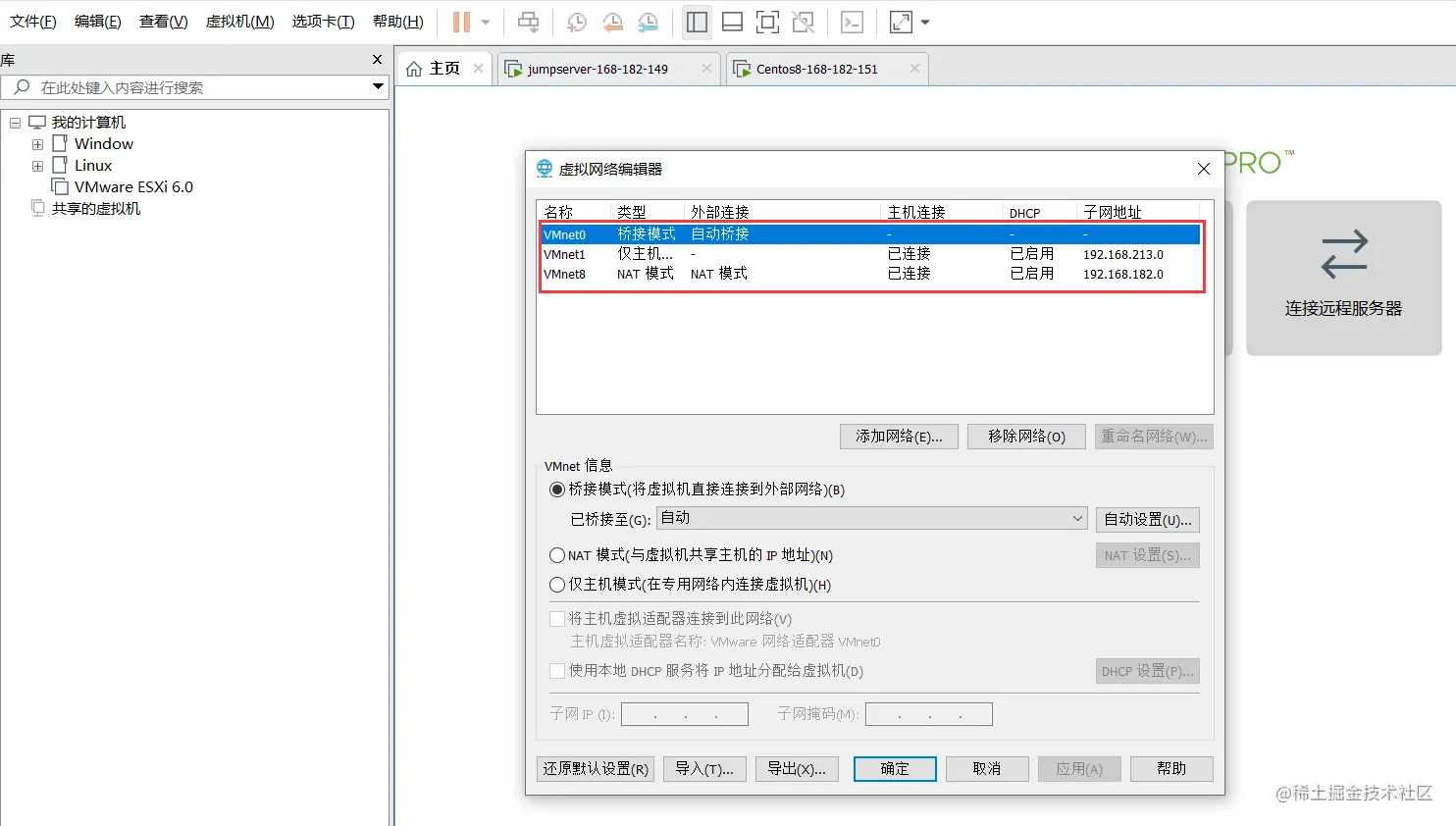 vmware为我们提供了三种网络工作模式,它们分别是:Bridged(桥接模式)、NAT(网络地址转换模式)、Host-Only(仅主机模式)。