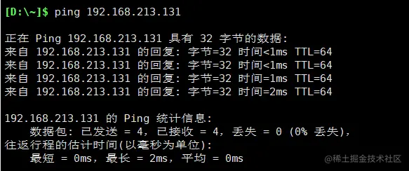 在本机ping虚拟机,能ping通