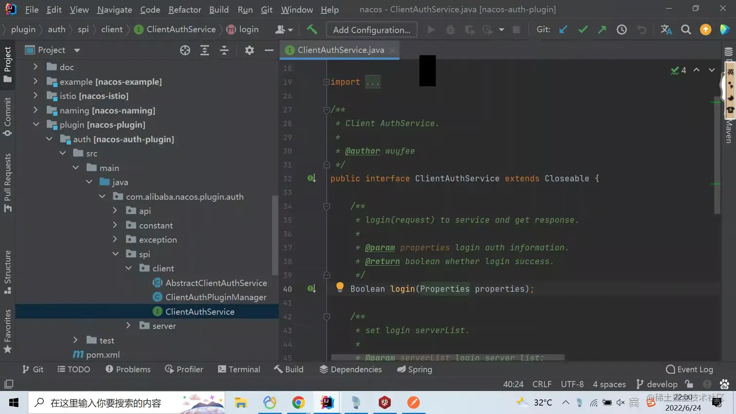 我们看下官网的文档,里面也有介绍Nacos插件这一块spi,如下图鉴权这一块的spi。接下来,我们来看下策略模式中里面的体现吧~