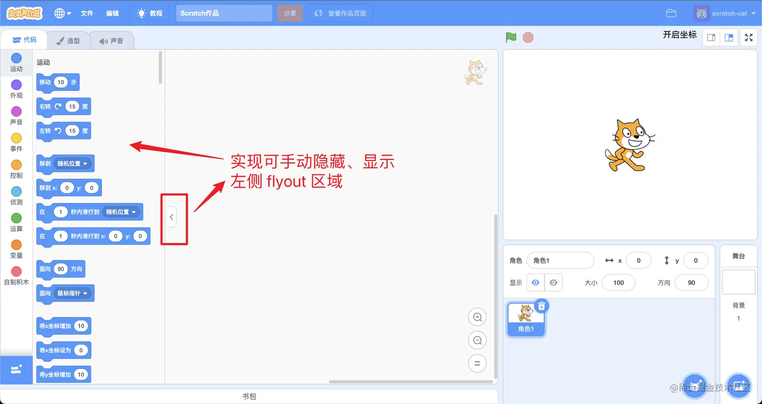 - 官方积木选择区域不可隐藏,如果将项目移植到移动端会很占位置,所以增加这个隐藏积木选择区域的功能
